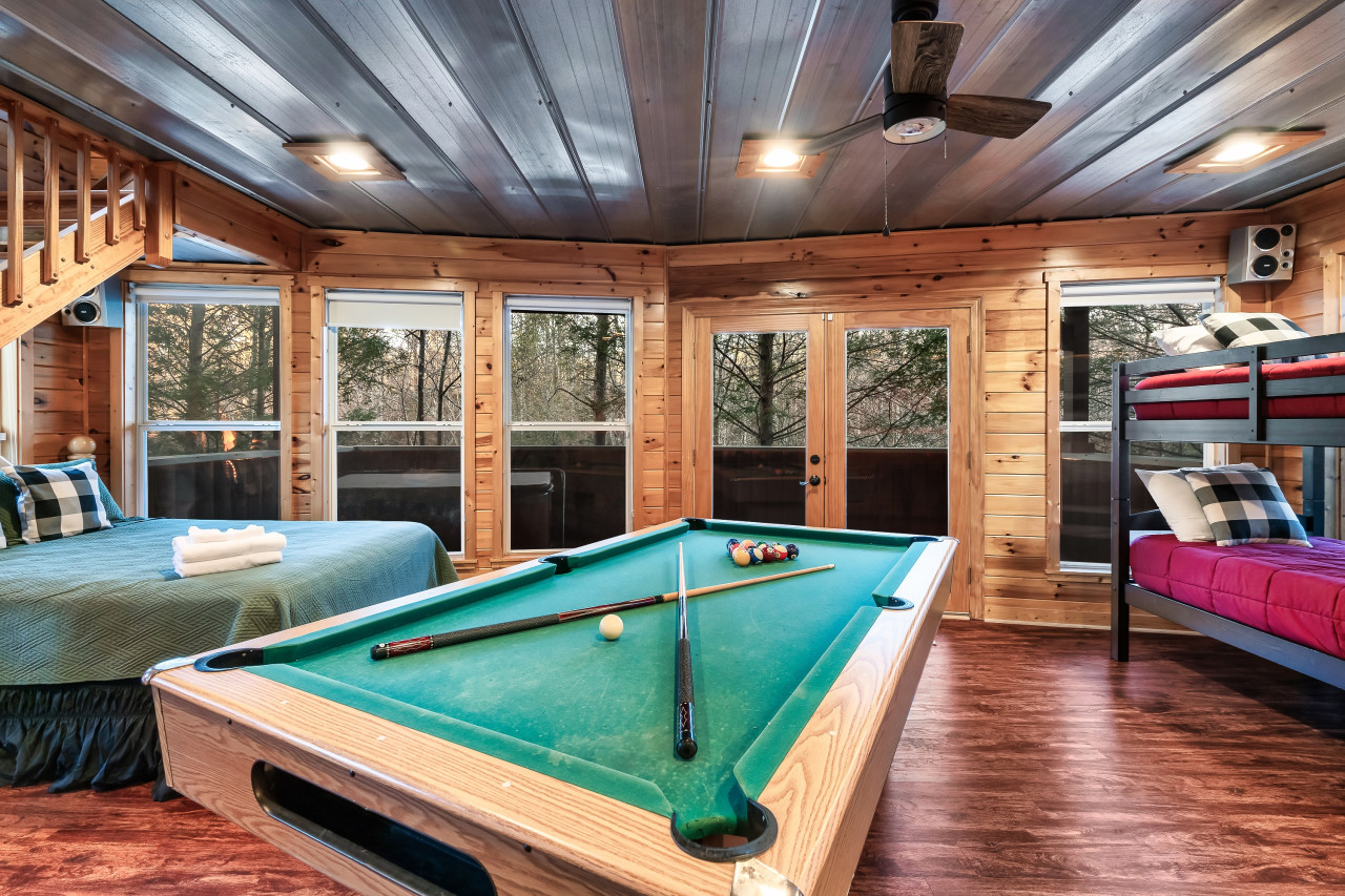 The cabin was cozy , private, and well kept ! We had an amazing time playing pool and in the hot tub, we also made s’mores on the fire pit & the place came with a nice surround sound! Definitely had fun !