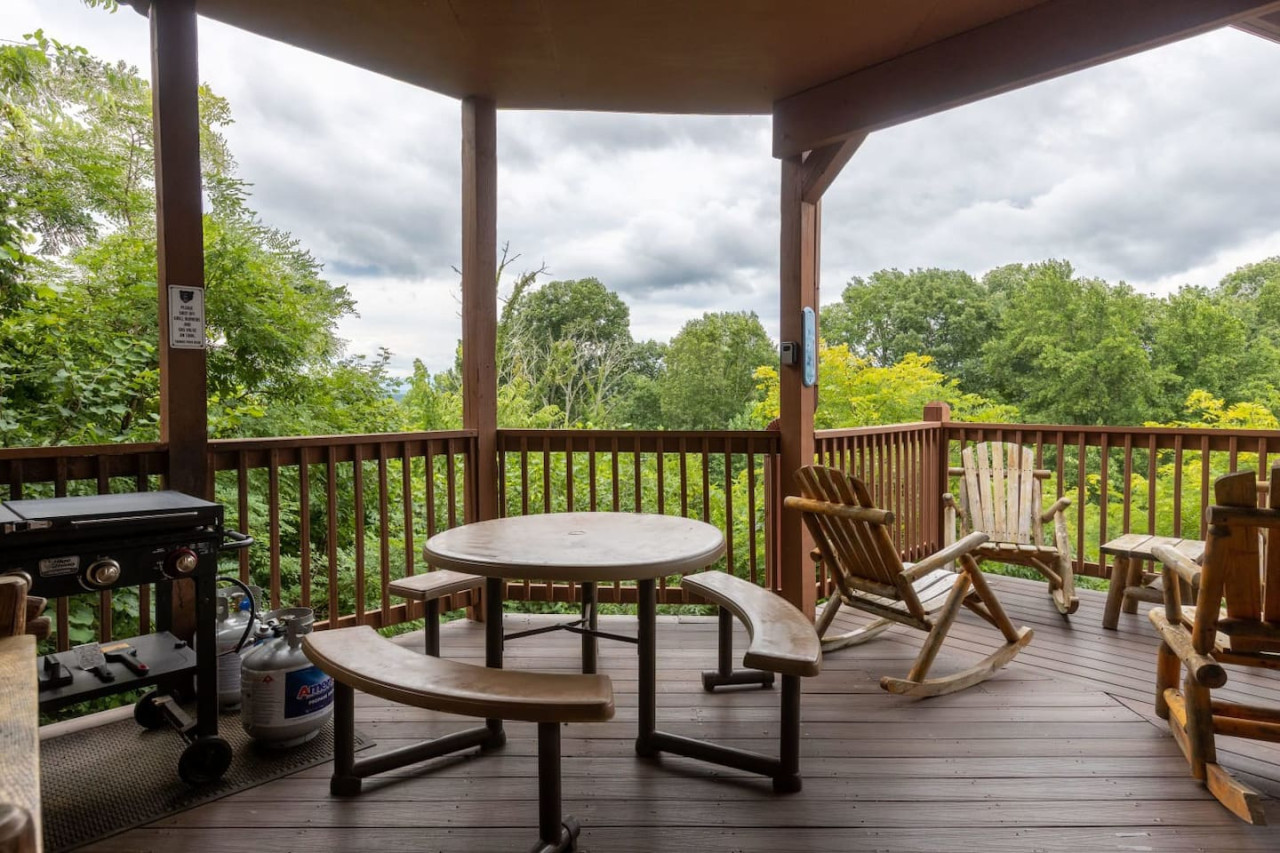 The kitchen is fully stocked and has all you will need to prepare memorable meals. Easily sit up to 10 at the table and 4 at the bar. A master king suite with full bath with shower and a jacuzzi tub room is located on the main level as well as two deck spaces to view the breathtaking beauty of the Great Smoky Mountains while drinking your morning cup of coffee. Want to enjoy dinner outside? Grab your food off the grill and dine at the picnic table, wooden rocking chairs and porch swing with your loved ones while taking in the sights and sounds of the mountains.